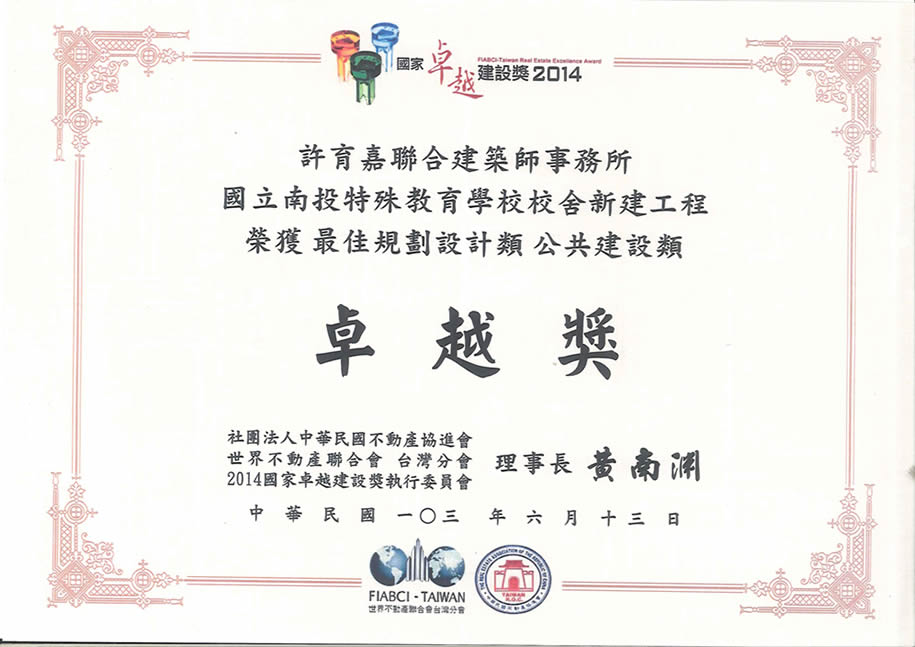 「國立南投特殊教育學校」:2014 年度國家卓越建設獎公共建設類卓越獎
